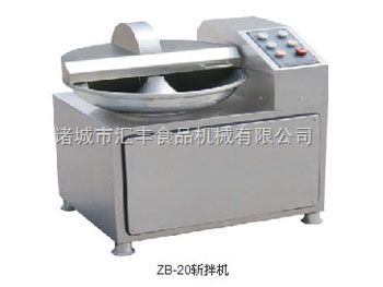 ZB-20斩拌机![]() 斩拌机是利用高速旋转的斩切将肉斩成颗粒状或肉糜状,还可以将肉、辅料、冰片、水一起搅拌成均匀的乳化物。本公司生产的斩拌机的刀速、锅速、斩刀与转锅的间隙达到适宜的组合,使斩切产品细度好、升温小、斩拌时间短。 斩拌机的性能特点: 该机斩刀选用进口材料经过特殊工艺加工,具有硬度高、耐磨损、韧性好等特点斩锅为铸不锈钢材质,并具有防溢锅沿,杜绝了渗料、溢料现象关键部件采用机加工中心加工,确保加工的准确度刀尖与斩锅的间隙为1.5-2mm,肉料斩拌乳化效果好 刀轴轴承采用两道密封,确保刀轴旋转部位良好润滑,使传动平稳 整机具有良好的动、静平衡,噪音低、震动小。 斩拌机的规格型号及技术参数: