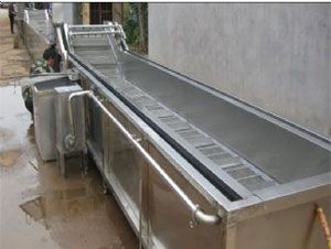蔬菜清洗设备设备除电机、轴承等标准件外均采用不锈钢SUS304/2B材料制作,完全符合出口食品卫生要求。蔬菜清洗设备设备中设有气泡发生装置,使物料呈翻滚状态,去除产品表面农残的功效,同时可加入适量的药剂,进行消毒固色。蔬菜清洗设备漂浮物可以从溢流槽溢出,沉淀物从排污口排出,以达到清洗的目的。具有洗洁净高、节能、节水、设备稳定可靠等特点。